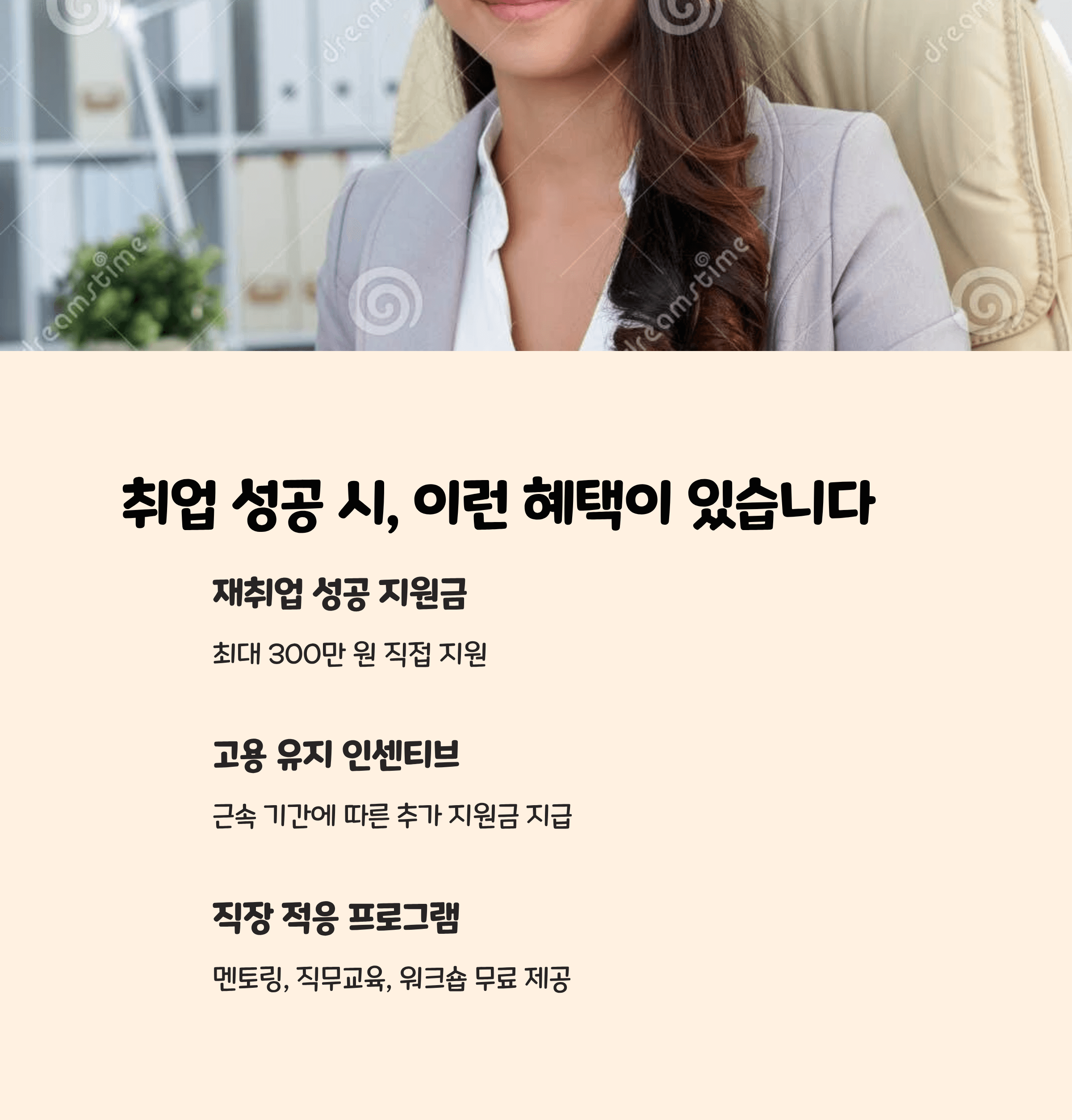 취업에 성공한 경단녀에게는 최대 300만원의 인센티브가 지급됩니다.