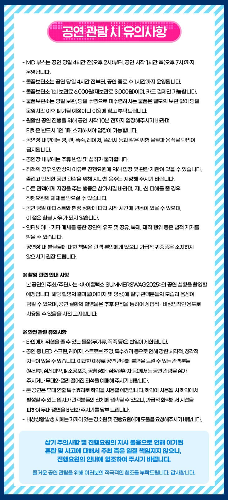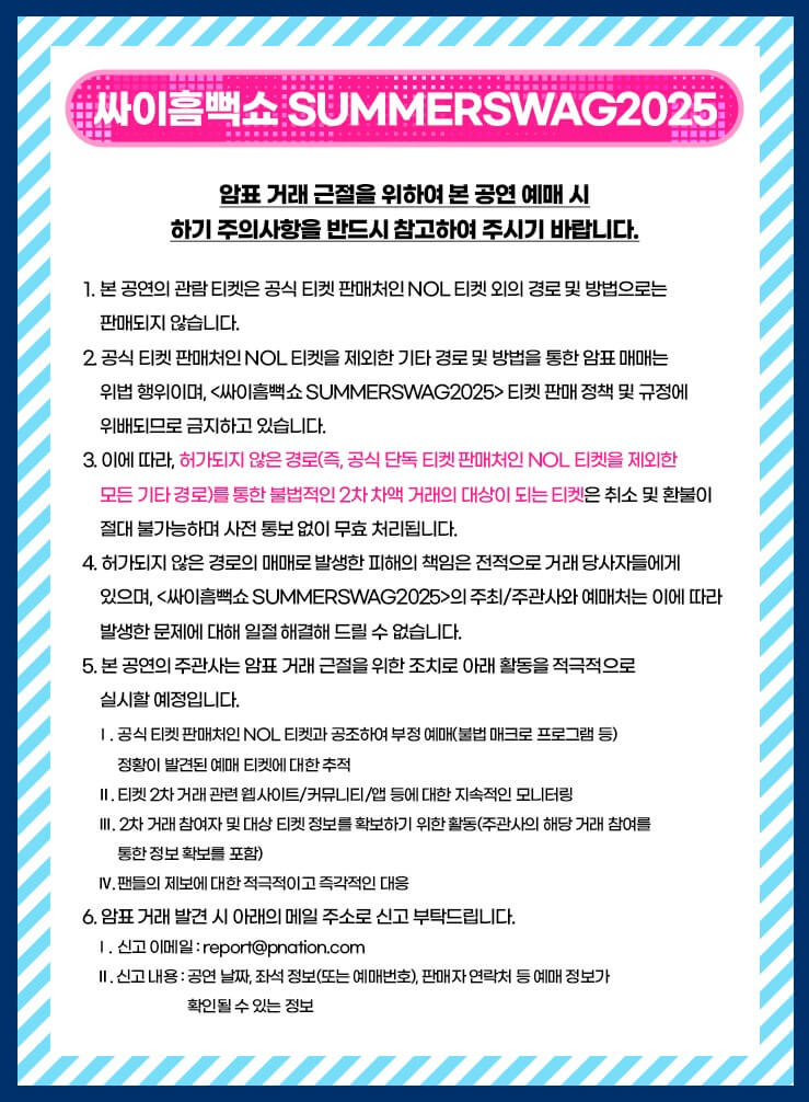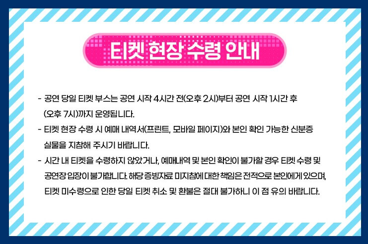 ※ 공연 당일 티켓 분실 시 입장 불가! 반드시 안전하게 보관하세요.