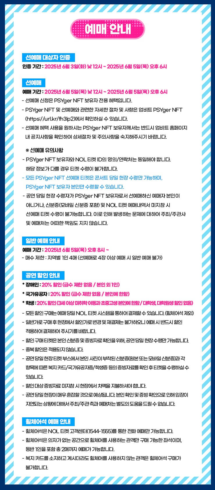 동일좌석 재예매 불가 / 예매 대기 서비스 미지원 / 매크로 예매 금지