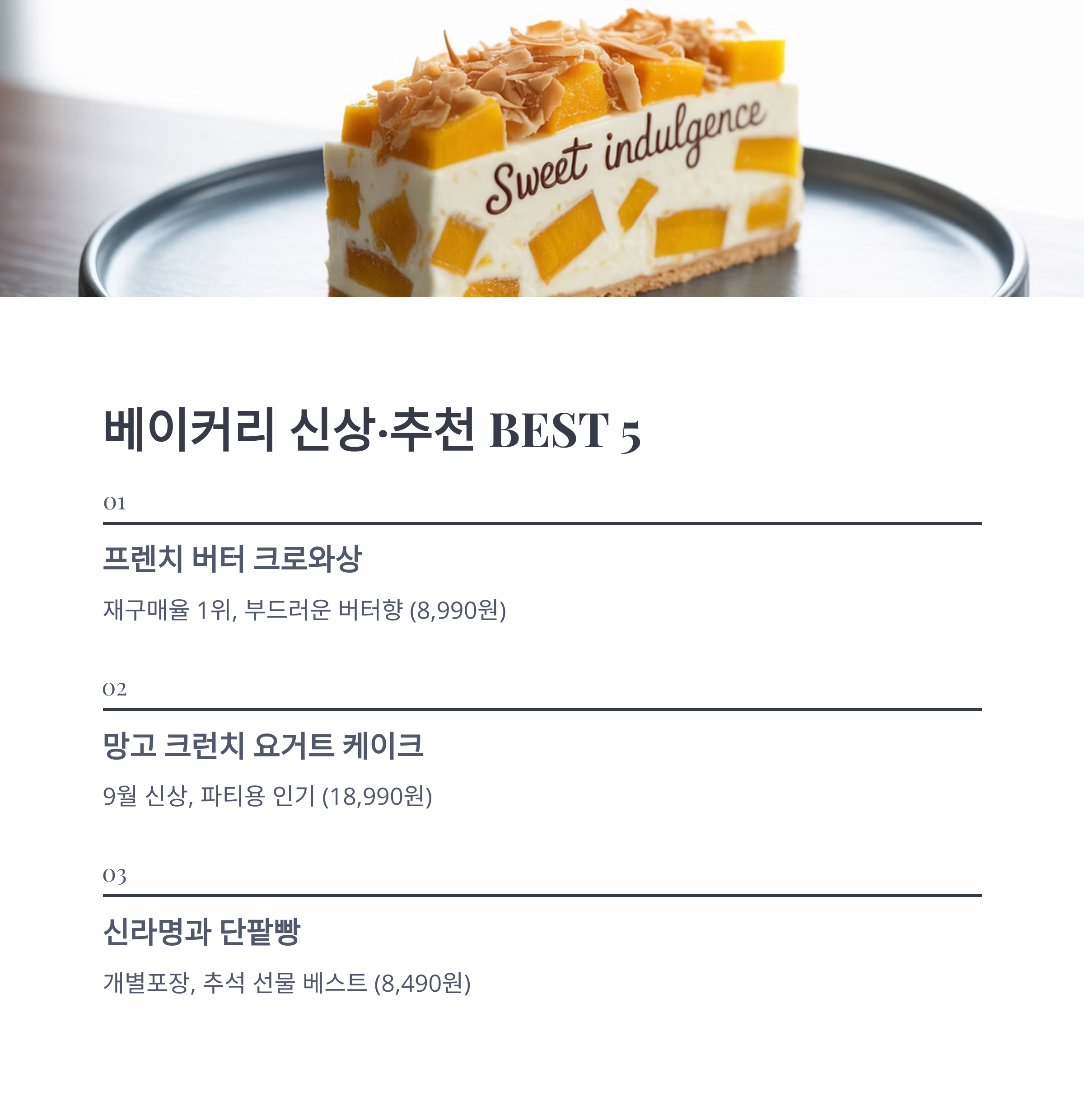 - 🍰 망고 크런치 요거트 케이크 – 9월 신상, 파티/손님 접대 인기