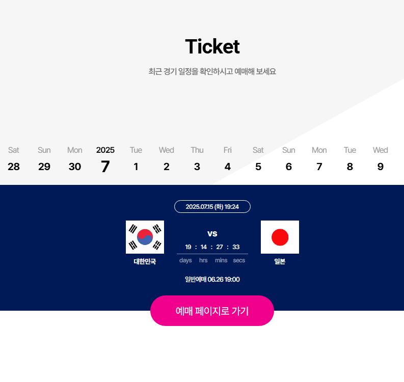 ※ 남자부 한일전의 경우, 킥오프 시간이 ‘19:24’로 확정되어 화제를 모으고 있습니다.